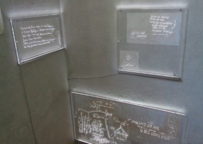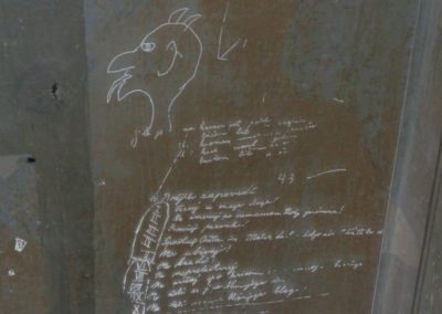 A 10 min da Radovlijka c’è forse il museo sloveno che ho apprezzato maggiormente: il Muzej Talcev di Begunje perché ha una storia che in pochi, al di fuori della Slovenia, conoscono ed è quindi nostro dovete di Public Historians farla conoscere. Begunje ospitava già un castello/residenza tardomedievale che nel corso dell’Ottocento venne adibita a prigione femminile gestita dalle Sorelle della Carità di San Vincenzo de Paoli. Quest’ordine religioso si occupava di recuperare le donne attraverso l’educazione e i lavori manuali quali l’attività tessile. Con l’aggressione della Germania nazista al Regno di Jugoslavia nel 1941 l’intero complesso venne requisito e trasformato in una prigione per oppositori politici, deportati in transito verso i campi di sterminio e persone sospettate di collaborare con la resistenza jugoslava. In totale vennero imprigionate 11477 persone di cui 9196 uomini e 2281 donne. Circa metà dei prigionieri aveva meno di 30 anni e 897 di loro vennero condannate a morte per fucilazione dopo essere state torturate. Il 4 maggio 1945 il distaccamento Kokra dell’Armata Partigiana liberò la prigione. Durante l’epoca titina il complesso ospitò una casa di correzione per donne, prigionieri e oppositori politici e una scuola di polizia. Attualmente ospita un ospedale psichiatrico. Il Muzej Talcev è stato ricavato in una piccola ala dell’ospedale e si sviluppa lungo un corridoio su cui danno dieci celle. Sulla parete del corridoio sono stati appesi i manifesti relativi alle esecuzioni sommarie e alle rappresaglie perpetrate dalla forze d’occupazione tedesche, mentre le celle sono state sottoposte a un brillante intervento di valorizzazione. L’aspetto non è mutato. Restano sempre angusti spazi detentivi, bui e umidi con i muri pieni di scritte e graffiti. Queste testimonianze grafiche, però, sono state salvate e rese visibili attraverso installazioni luminose con luci al led. Riportano pensieri e disegni realizzati dai prigionieri consumati dalla noia, dai deportati in attesa di essere trasferiti o dai partigiani in attesa di essere fucilati. È una visita che lascia forti emozioni e che merita di essere effettuata.