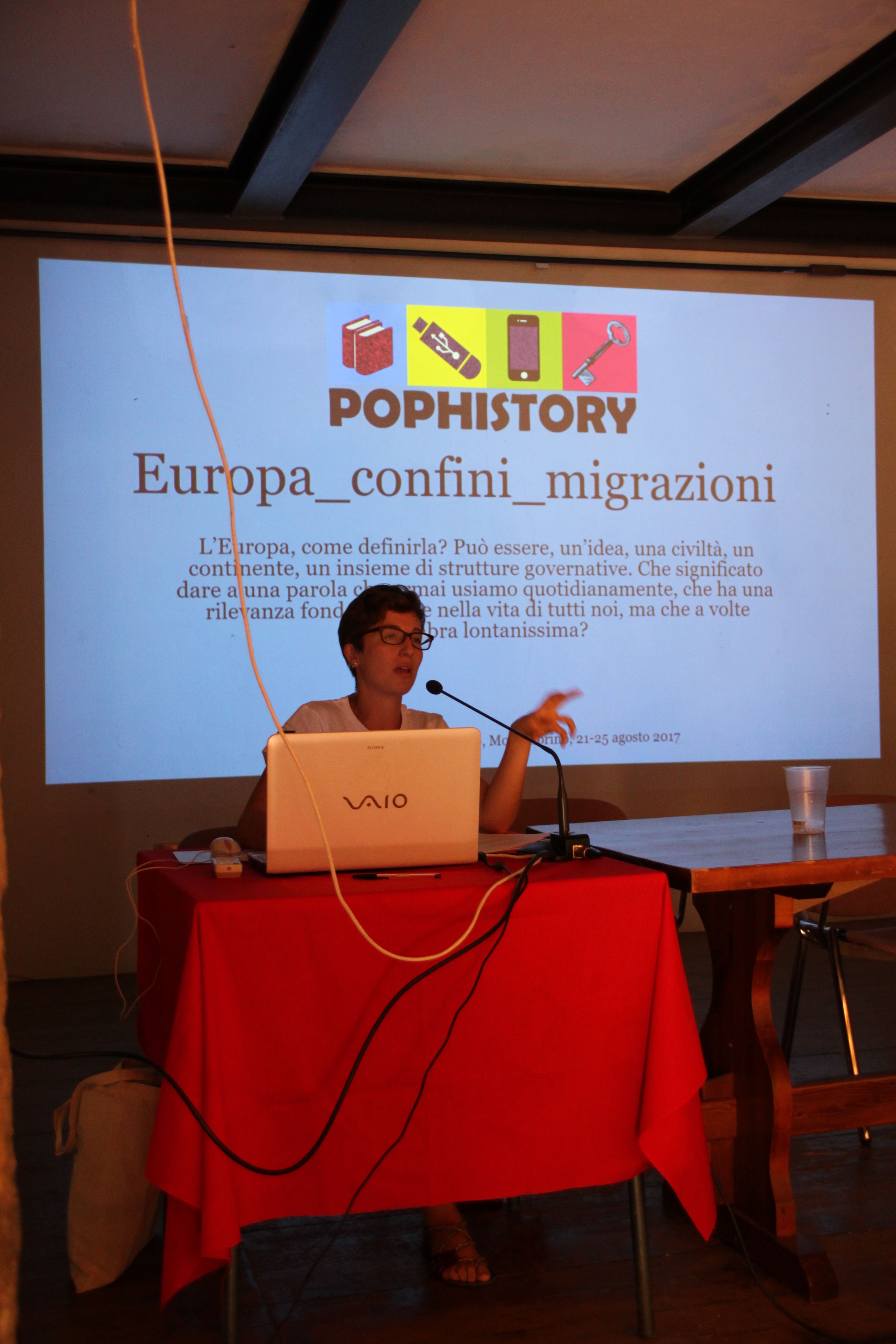 Per ognuno dei tre moduli PopHistory si è occupata di realizzare un laboratorio a supporto delle lezioni più tradizionali, tenuti dagli esperti senior, per stimolare la partecipazione attiva degli iscritti al Camp, con un approccio public e …pop! Vediamoli nel dettaglio! Oggi in Italia, domani in Europa. I fratelli Rosselli da icona a maestri di antifascismo, curato da Chiara Asti e Mirco Carrattieri (Museo di Montefiorino e soci di PopHistory). Il laboratorio ha affrontato, nell’ottantesimo anniversario della loro morte, la vicenda dei fratelli Rosselli. Sono stati ripercorsi il loro impegno e la loro lotta antifascista fino all’uccisione da parte di sicari del regime, attraverso immagini e fotografie in grado di richiamare alla memoria anche la loro vicenda umana. A partire dal caso dei Rosselli sono stati mostrati anche i caratteri, le virtù e i limiti dell’esperienza antifascista e della sua memoria nel dopoguerra. I partecipanti al Camp, divisi in gruppi, hanno ricevuto una serie di immagini mute relative alla vita dei Rosselli; confrontandosi fra di loro hanno cercato di trarre da questi materiali le emergenze più significative per la vicenda e ulteriori spunti di riflessione, che hanno poi restituito a tutta l’assemblea. Il secondo laboratorio, curato da Iara Meloni e Tiziano Picca Piccon (soci dell’Associazione PopHistory), dal titolo Figli di un’epoca. Uomini e donne della Resistenza si raccontano, ha ragionato sui fenomeni della Resistenza e della deportazione politica attraverso le storie di due protagonisti, Alma Bevilacqua (Giovanna Zangrandi) e Giovanni Baima Besquet, declinati in un’ottica comparata di genere. Questo laboratorio è stato caratterizzato da una partecipazione emozionale alle vicende di due testimoni di una vicenda fondamentale nella storia del Novecento. L’esperienza partigiana femminile, caratterizzata da difficoltà e singolarità, è emersa grazie alle storie di Alma Bevilacqua. In seguito sono poi stati proiettati i disegni di Giovanni Baima Besquet (tratti da 1943-45 Deportati a Mauthausen di Giovanni Baima Besquet, Teca, Torino 1946) i quali sono stati comparati con i disegni di altri deportati politici. Dalla proiezione è emersa la drammatica quotidianità che la scelta della Resistenza ha portato nella loro vita, fino alla barbarie dell’universo concentrazionario nazista. I disegni, protagonisti del laboratorio, sono stati interrogati e interpretati come testimonianza e come esempio di resistenza, o meglio resilienza, alla volontà di disumanizzazione e di oblio tipica della logica nazista. Il terzo laboratorio è stato curato da Alda Guidi e Silvia Lotti (entrambe socie PopHistory). Europa_Confini_Migrazioni – questo il titolo – ha presentato una riflessione su come si è evoluto il concetto di Europa nel corso del Novecento. I partecipanti sono stati interrogati su quale sia oggi, la loro identità europea. L’Europa è chiaramente un oggetto ancora complesso da definire. Europa può essere solo un’idea ma anche una civiltà complessa, alcuni la interpretano come il continente, mentre per altri si tratta di un insieme di strutture governative. Da queste molteplici interpretazioni è partito il filo conduttore del laboratorio che ha suddiviso il Novecento in tre periodi, affrontati secondo fonti e mezzi differenti. Al centro di questo processo di suddivisione i concetti di confine e di migrazione.