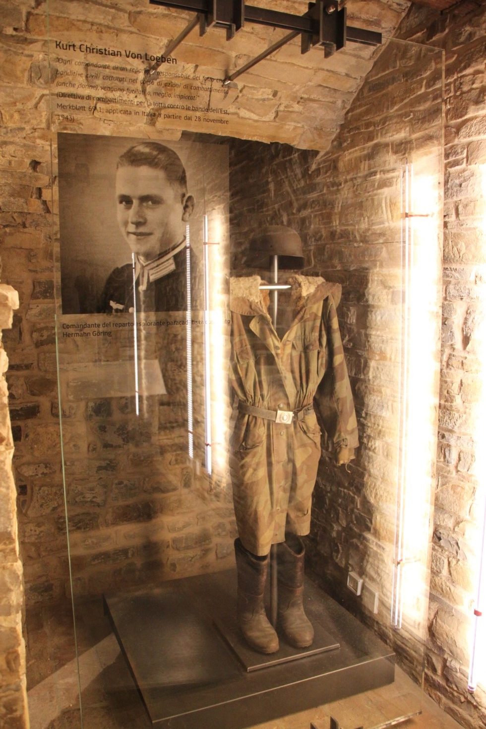 Divisa del Reparto esploratori della Divisione corrazzata paracadutisti Hermann Göring. Diverse sono le azioni repressive messe in atto dai comandi tedeschi sulla popolazione civile nell’appennino modenese e reggiano: tra esse quella iniziata il 17 marzo 1944 dal capitano di cavalleria von Loeben, a capo della Divisione Herman Göring, nei comuni di Susano, Costrignano e Monchio e che avrà come bilancio 136 vittime (tra cui 8 donne e 4 bambini) e diverse abitazioni incendiate o fatte saltare.