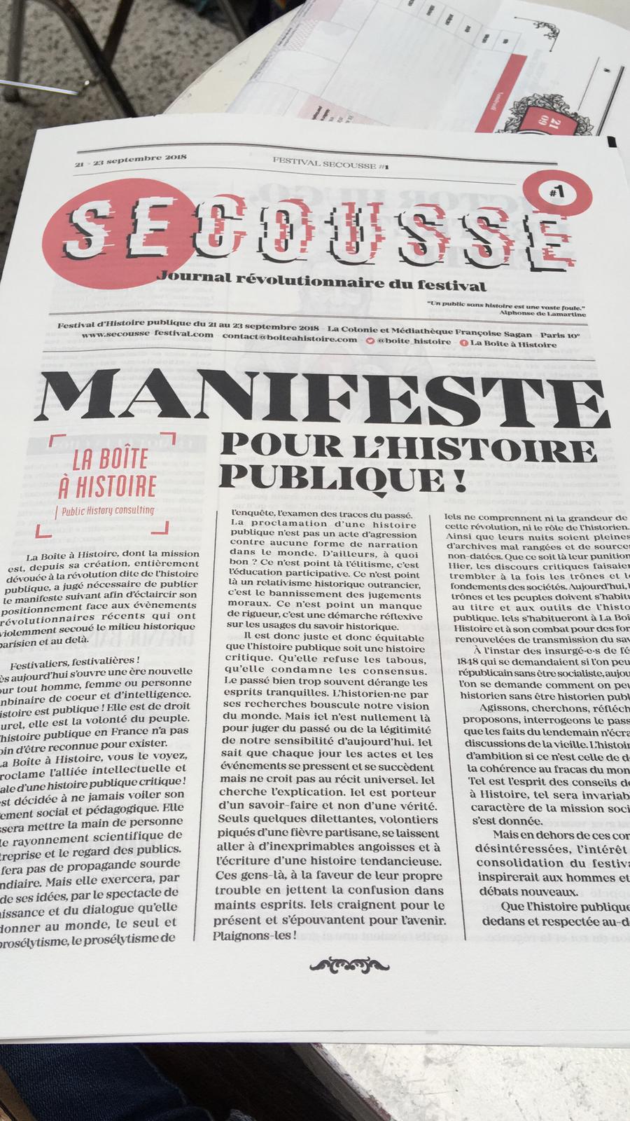 Prendete un gruppo di giovani preparati e intraprendenti, docenti esperti e curiosi di raccontare la Storia in modo nuovo ma non per questo meno efficace. Aggiungete uno spazio ricreativo e culturale a due passi dalla Gare du Nord (http://www.lacolonie.paris/), non dimenticate che quest’anno ricorrono i 170 anni dalle rivolte parigine del 1848 e… benvenuti a Secousse, il primo festival storico organizzato dall’associazione La Boîte à Histoire (http://www.boiteahistoire.com/). In rappresentanza delle associazioni Pinte di Storia e PopHistory, abbiamo vissuto una tre giorni intensa nella capitale francese.