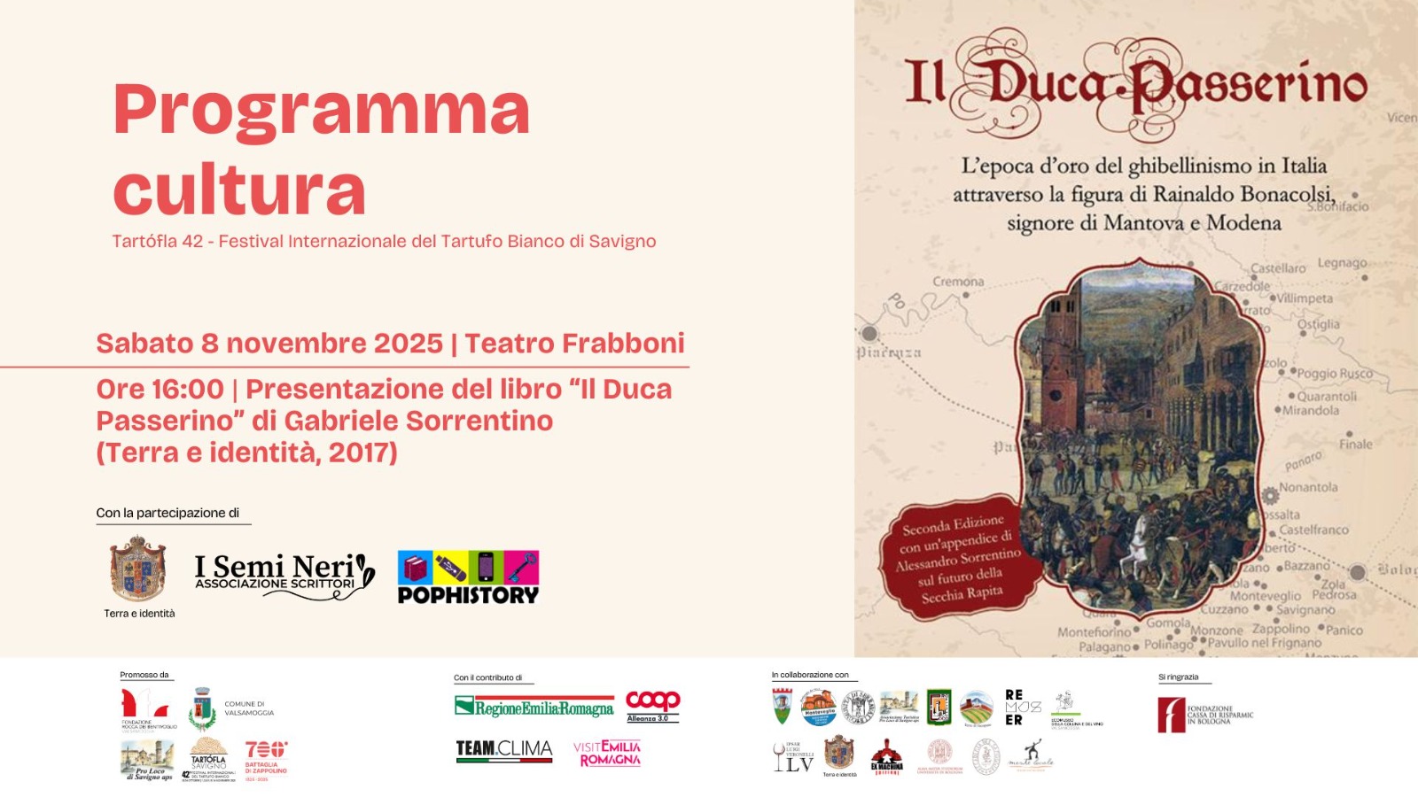 Un pomeriggio dedicato alla storia e alla letteratura locale con la presentazione del libro Il Duca Passerino di Gabriele Sorrentino (TerrĂ e IdentitĂ , 2017).